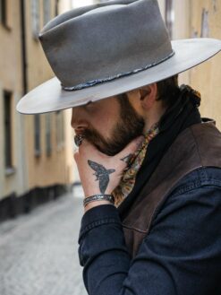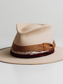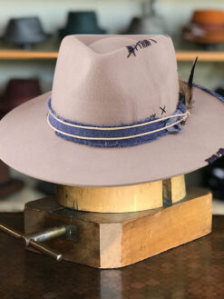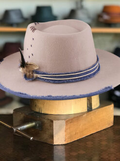 “Handmade from 100% wool felt in the United States, this vintage and unique fedora hat is crafted in an environmentally friendly environment. Each hat is manually processed, aged, fire baked, and painted, resulting in a one-of-a-kind piece. The high-quality Australian wool is breathable and natural, while the sweatband features a non-adjustable synthetic belt with an engraved logo. The package includes two hat paddings to reduce the circumference if needed. Store this hat flat in the provided box to avoid dust and warping. Free shipping is included. This wool fedora hat is perfect for outdoor activities and offers great comfort all day long.”