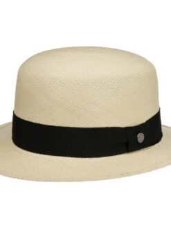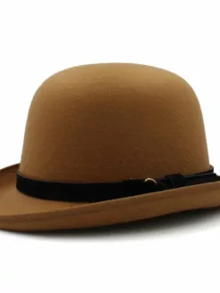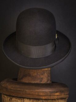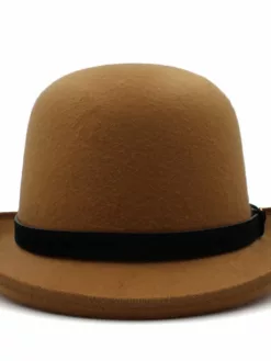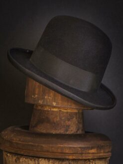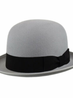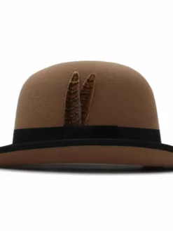 This refined bowler hat is made of 100% finest fur felt and meets the highest quality requirements of a stylish outfit. With a leather inner band, satin lining, grosgrain ribbon trim and bound edging, this occasion wear hat is exceptionally comfortable to wear.
