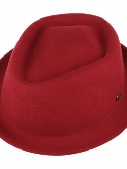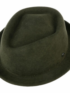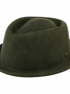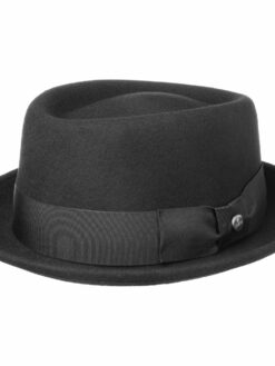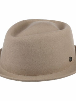 Timeless and with no-frills, this compact pork pie with diamond-shaped crown knows how to impress. The narrow-brimmed hat is made of crushable and water-repellent wool felt and will win you by its appearance and also its complete functionality. Entirely without grosgrain ribbon trim and brand pin, the small wool hat certainly has the makings of a classic.