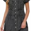- A classic collared neckline pairs with a full button-up front, giving this spring dresses for women 2026 the flexibility to wear it open as a lightweight duster or buttoned up as a statement mini.