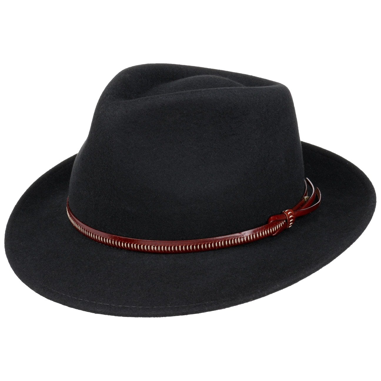 With its high quality wool felt material, this elegant fedora is warm, soft and comfortable to wear. Water also reliably pearls off of the carefully crafted textile. This makes the crushable hat the perfect accessory for wearing in unpleasant weather conditions. However, it impresses even in sunny weather with its stylish charm and fashionable accents.