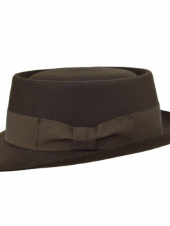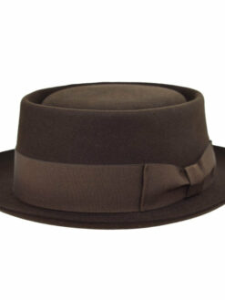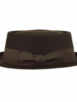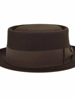 The Classic Pork Pie Fur Felt Hat in Brown, a timeless accessory that combines elegance and style. Crafted from premium fur felt, this hat features a distinctive flat crown and a narrow brim, providing a sophisticated yet casual look.