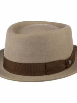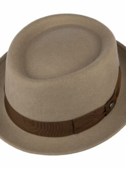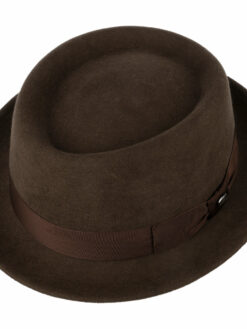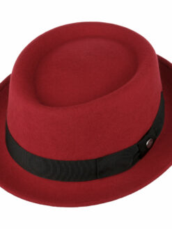 The ideal hat looks good and impresses with its comfort and ability to bounce back. This Italian-made pork pie hat in high-quality wool felt meets all these requirements. The felt hat owes its stylish appearance to the plain-coloured design and grosgrain ribbon trim above the smartly turned-up brim, which is held in place by a bow.