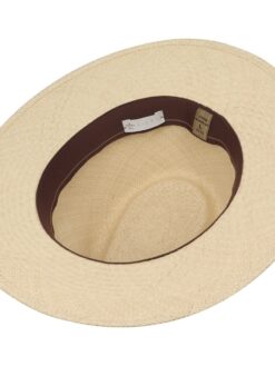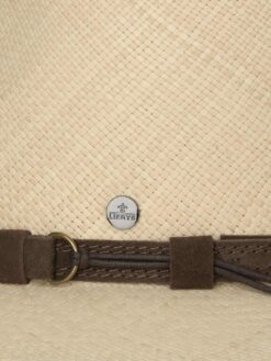 Painstaking handiwork has turned Panama straw into this traveller hat, giving it its characteristic, elegant appearance and, combined with a fast-drying fabric lining band, making it exceptionally comfortable to wear. In addition to this, the straw hat is encircled by a leather trim band, decorated with metal eyelets and a leather band to create a striking finishing touch. The stylish way to round off any summer outfit.