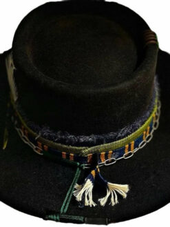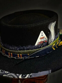 “Distressed Fedora with Rounded Crown and Colorful Ribbon Adornments” is hand-distressed, hand-dyed, and hand-torched, ensuring no two share the same color or design. Each piece is uniquely imperfect, with subtle variations from product images.