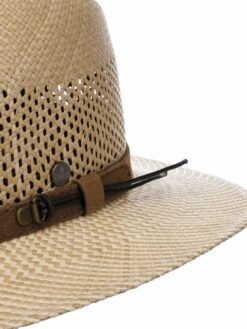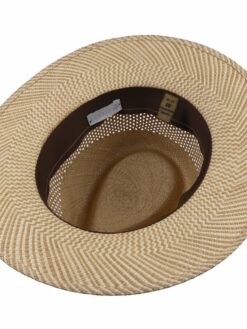 In summer, you can’t do without the airy straw hat. It is woven in Ecuador from 100% Panama straw and features a brim patterned in two natural shades. A wide air-permeable strip is incorporated into the crown to keep your head cool on hot summer days. The narrow trim band is made of leather.