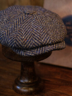 The “Eight Piece Navy Herringbone Newsboy Cap”, a timeless accessory that exudes classic charm and sophistication. Crafted from high-quality tweed wool fabric, this cap combines durability with style, making it a versatile addition to your wardrobe.