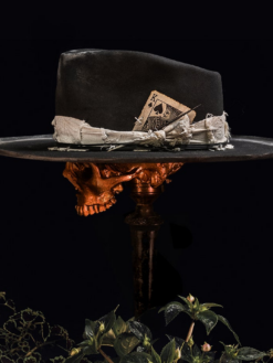 - The color is Sahara. We did not distress it as much as shown in the movie hat.