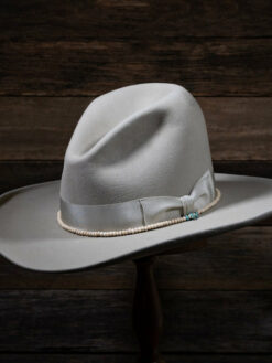 The Old West Cowboy Hat is constructed of quality fur felt and features a sloped crease crown, interior quality sweatband.