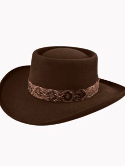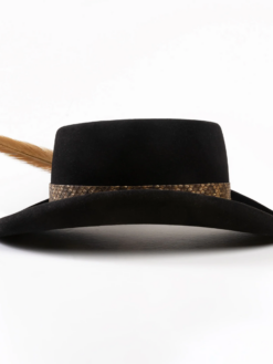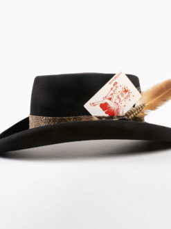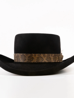 The Southern Rocker – Inspired by the memorable hat worn by the late Ronnie Van Zant. When it comes to a good western hat, don’t settle for anything less. This unique hat has a 4″ teardrop crown, and a rolled raw edge brim thats available in different sizes. Let’s not forget about the very unique 1 1/8″ Western Diamondback Rattlesnake with the Rattle band to top it off! This is a top-quality hat with a great price.