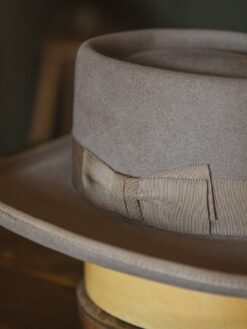The Rustic Rider Felt Pork Pie Cowboy Hat, a stylish and versatile addition to your wardrobe. Crafted from high-quality felt, this hat offers both comfort and durability, making it perfect for any outdoor adventure or casual outing.