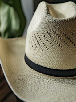 Stylish Quality Straw Cowboy Hat, designed for those who appreciate both elegance and functionality. This hat features a classic Cattleman crown that stands at 4 1/4 inches, providing a timeless silhouette that complements any outfit. The brim measures a generous 3 1/2 inches, offering ample shade and protection from the sun.
