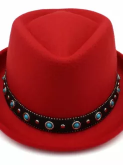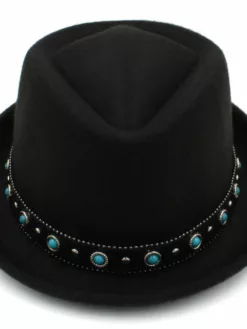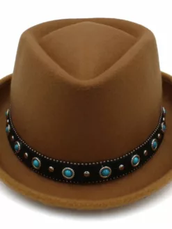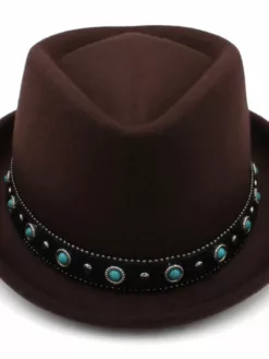 Elevate your style with our Leather Belt Decorated Pork Pie Hat Fedora. This classic hat features a high crown of 4.33 inches and a brim width of 1.38 inches, adding a touch of elegance to any outfit.