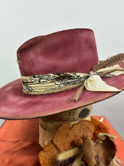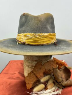 “Vintage Voyage Felt Fedora” is handcrafted, hand-dyed and hand-distressed. That means no two hats have the same color or character, making each hat truly one of a kind. Unique to each hat.
