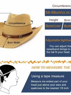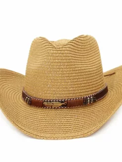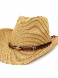 Channel your inner cowgirl or cowboy with this stylish straw sun hat. Designed for both men and women, this hat features alloy feather beads for added flair. Perfect for summer days at the beach or outdoor adventures, this Panama-inspired hat combines Western charm with sun protection for a fashionable and functional accessory