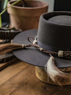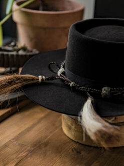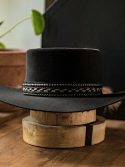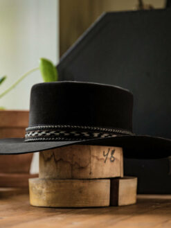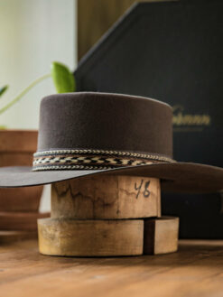 The “Western Wool Felt Pork Pie Hat” features a stately 4″ gambler crown and 3″ brim. A tooled hat band augments its rugged style and a quality sweatband, and full satin liner provide a secure and comfortable fit.