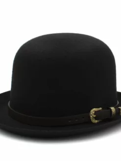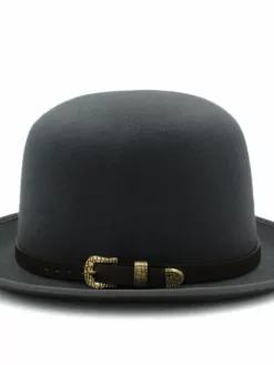 Elevate your style with our classic Bowler hat. This timeless piece is meticulously crafted, boasting a crown height of 4.72 inches and a brim width of 1.97 inches. The Bowler hat is the perfect accessory to add a touch of sophistication and tradition to your ensemble. Whether embracing a formal or casual look, this hat is a versatile choice suitable for various occasions. Its sleek and timeless design exudes elegance and charm, making it a standout addition to any wardrobe. Make a statement and elevate your style with our impeccably designed Bowler hat.